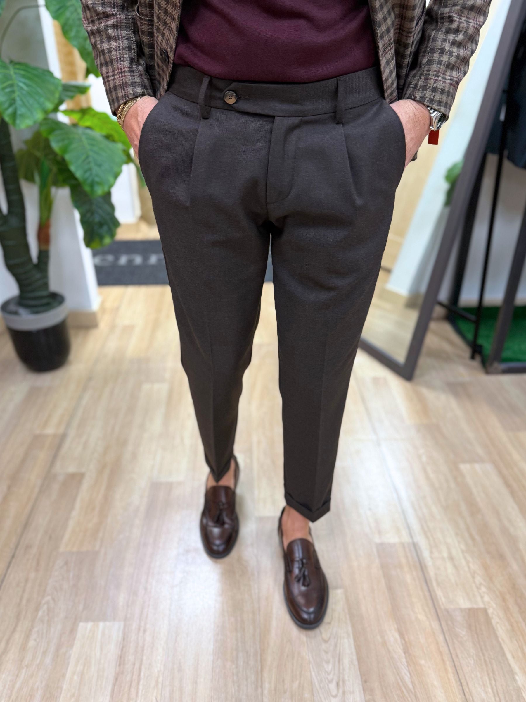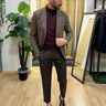 - Abito Monopetto, Giacca Sfoderata con Micro Fantasia, Pantalone con Pinces e Risvolto Fisso
