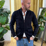 - Chiusura full zip, tasche frontali con pattina e bottone, lavorazione tono su tono.