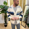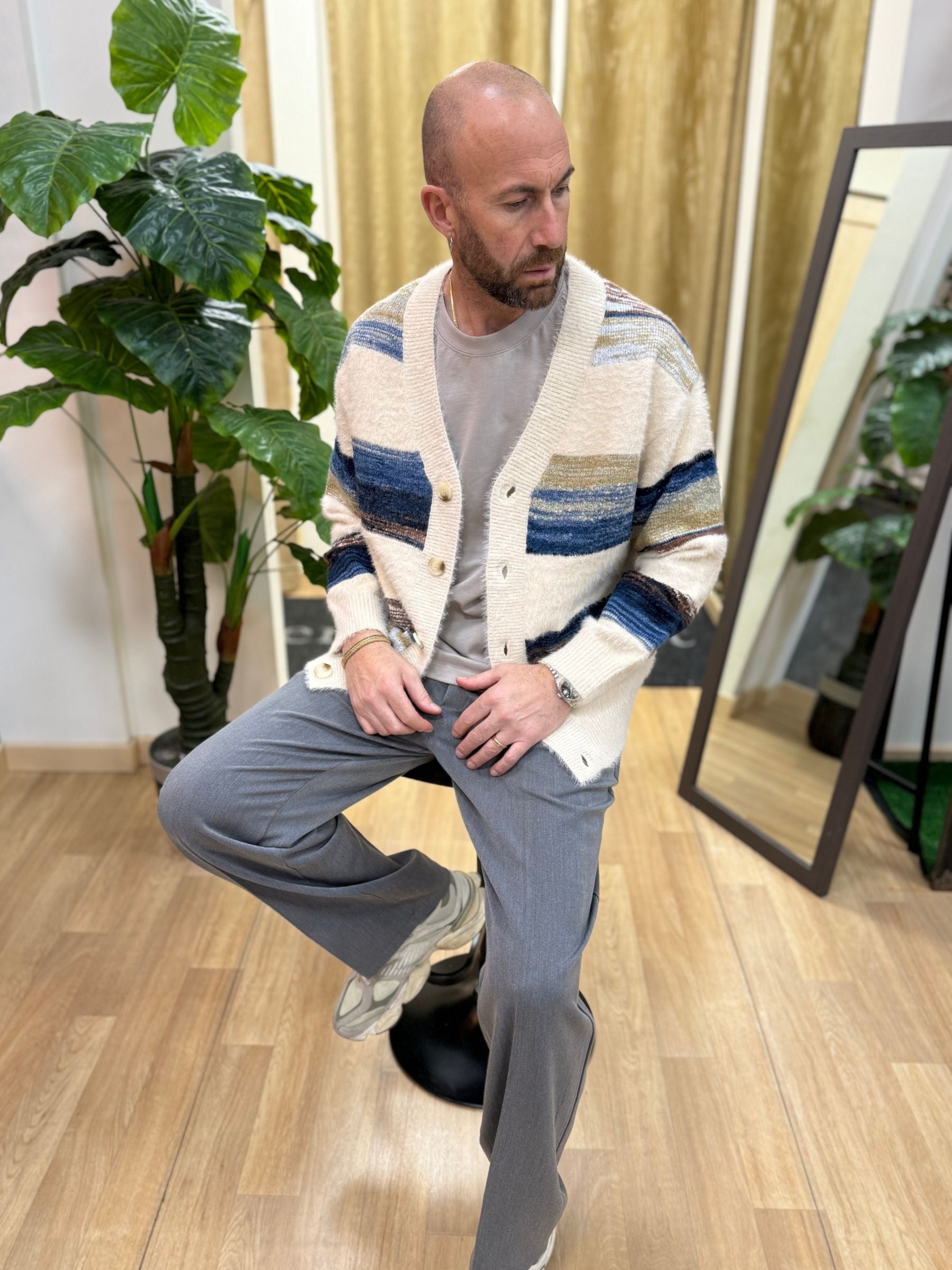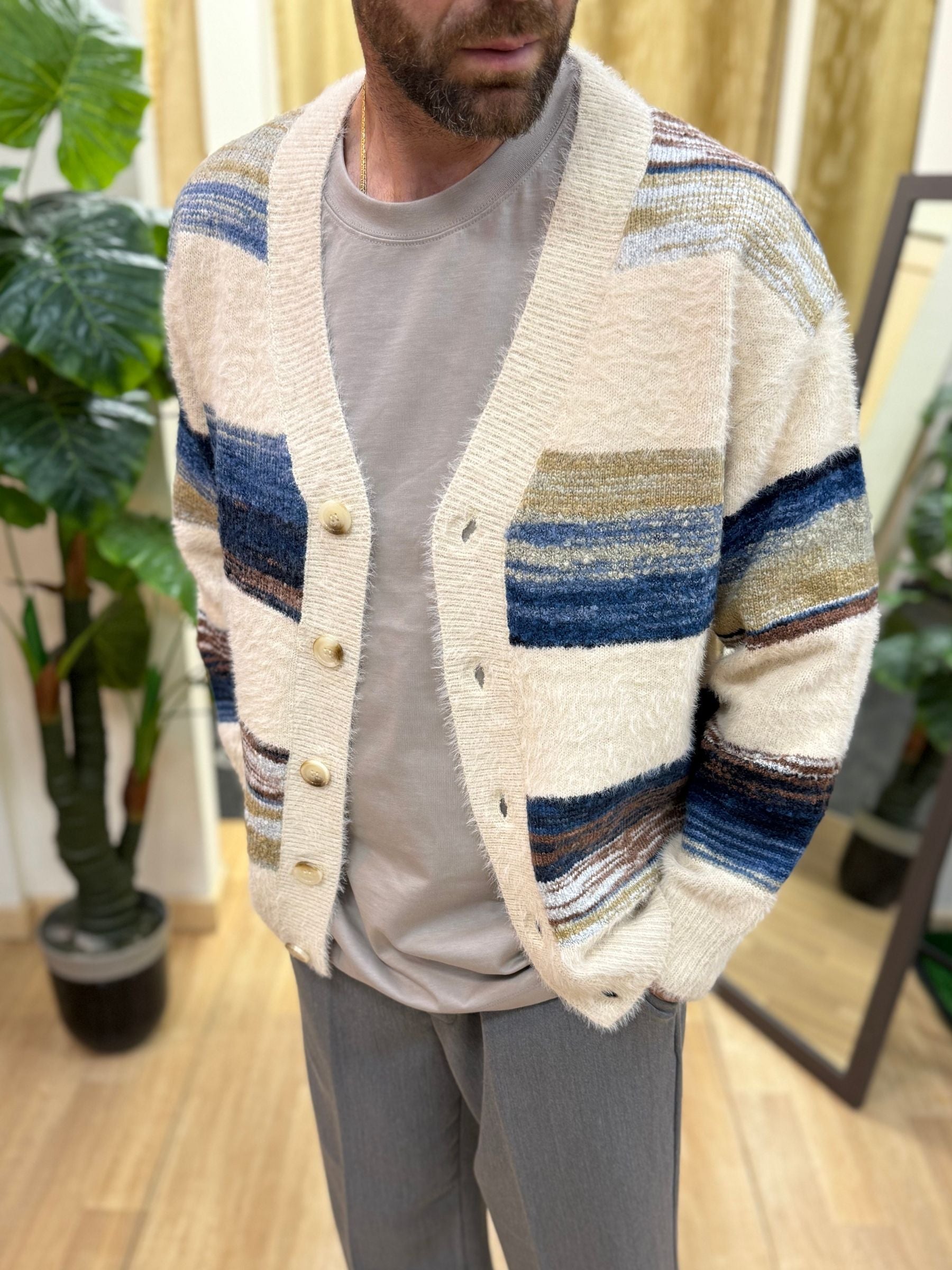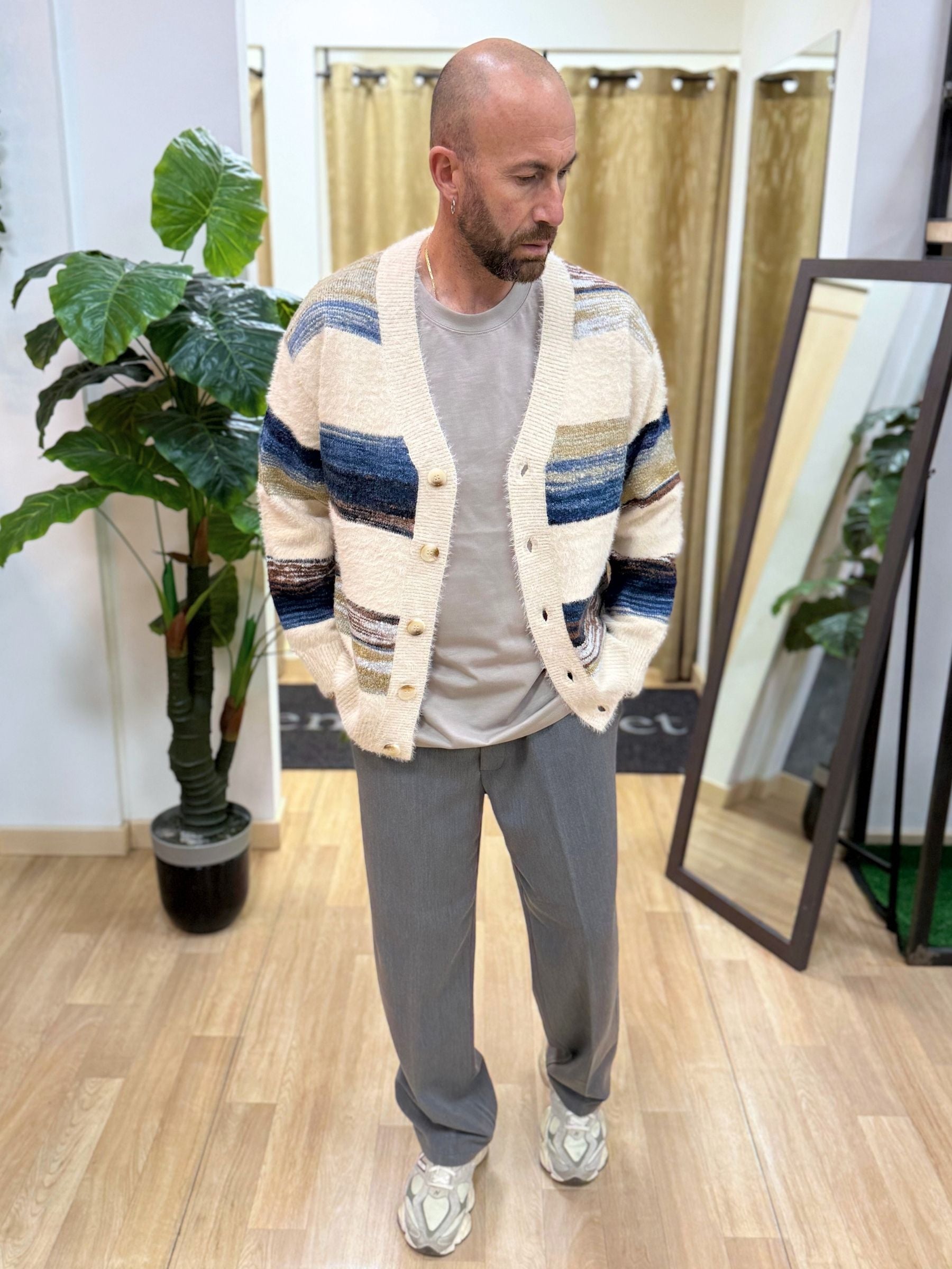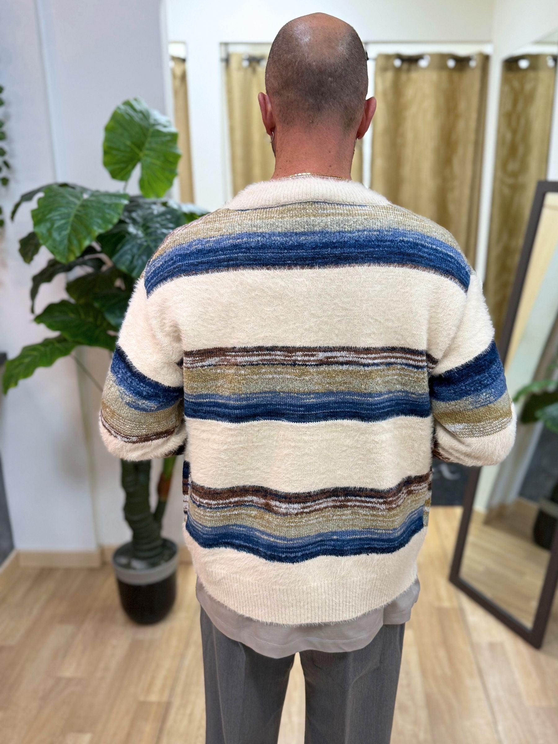 • Motivo a righe orizzontali in tonalità blu, sabbia e marrone