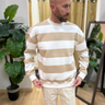 - Felpa a righe larghe beige e panna, dal design pulito ed essenziale. Taglio regular con collo, polsini e fondo elasticizzati.