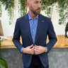 - Giacca monopetto in tessuto effetto microspigato, con rever classico, taschino sul petto e tasche frontali a pattina.