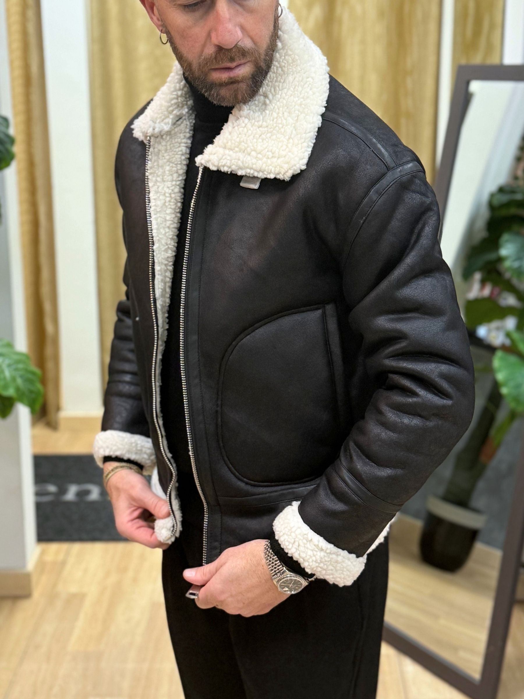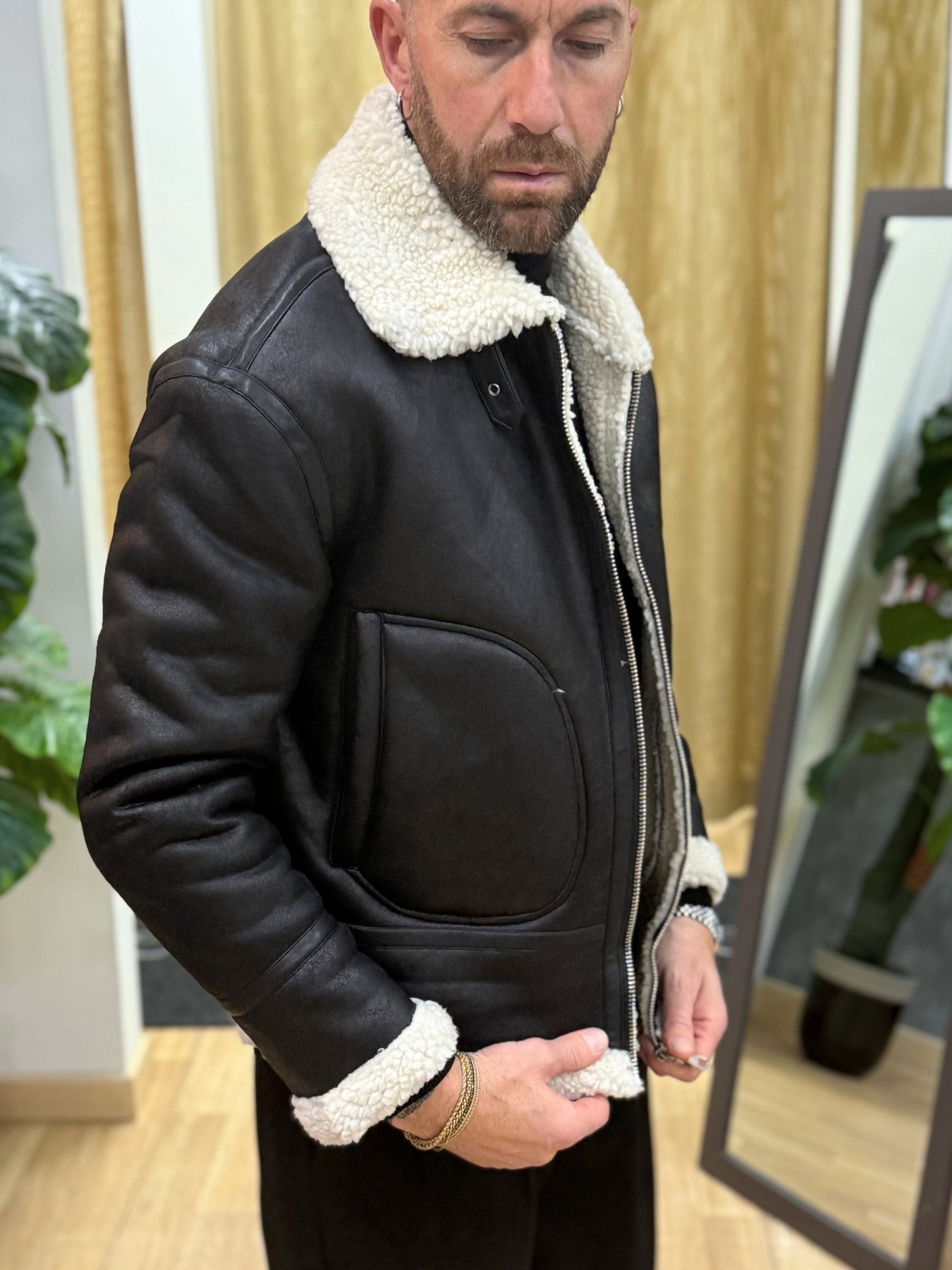 • Giacca effetto montone con interno caldo in eco lana, polsi e fondo risvoltati;