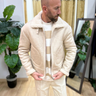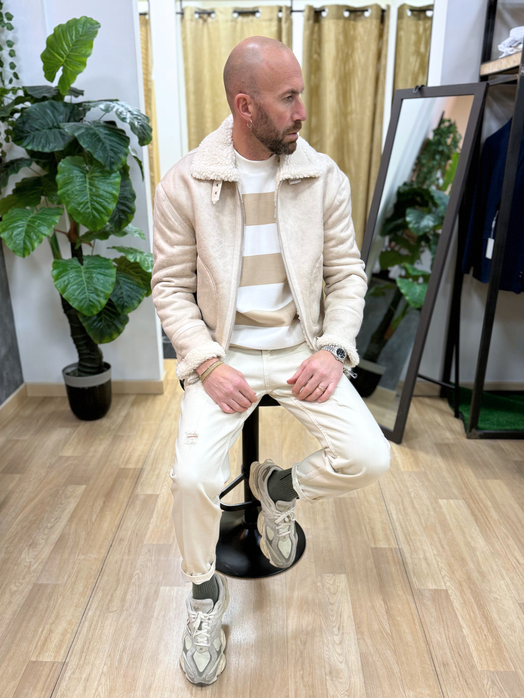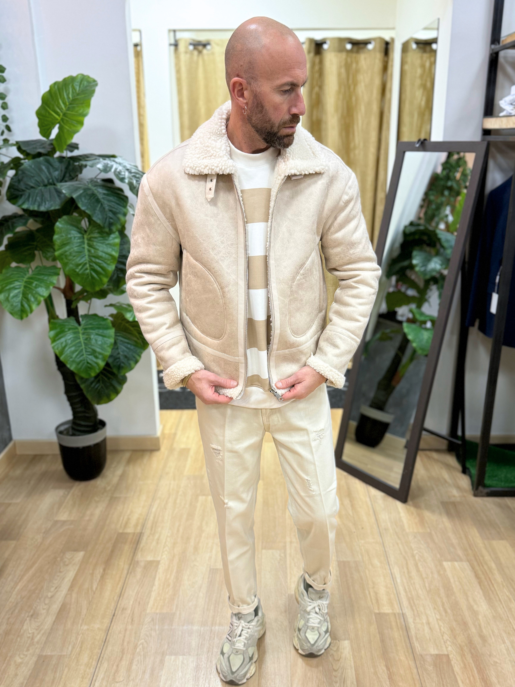 - Giubbotto in ecopelle effetto montone, con interno in eco-shearling morbido e caldo. Presenta colletto alto con cinturino, zip centrale e tasche laterali. Design moderno e dettagli curati per uno stile urbano e raffinato.