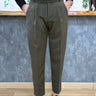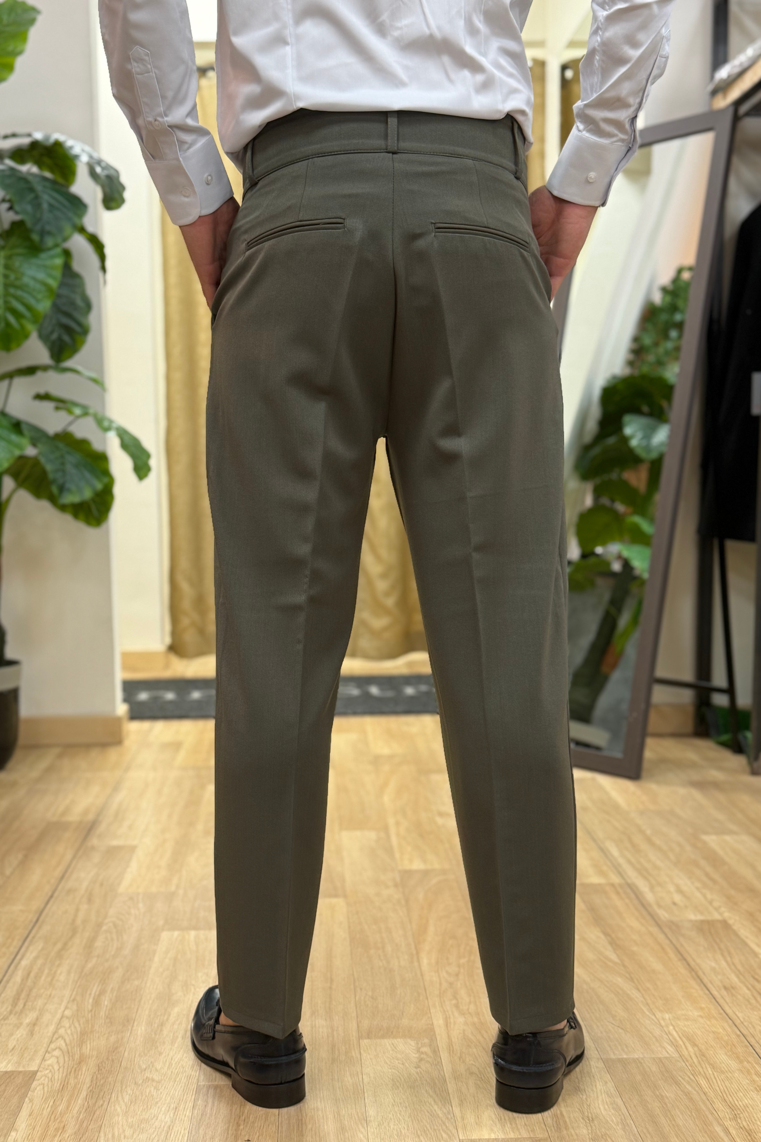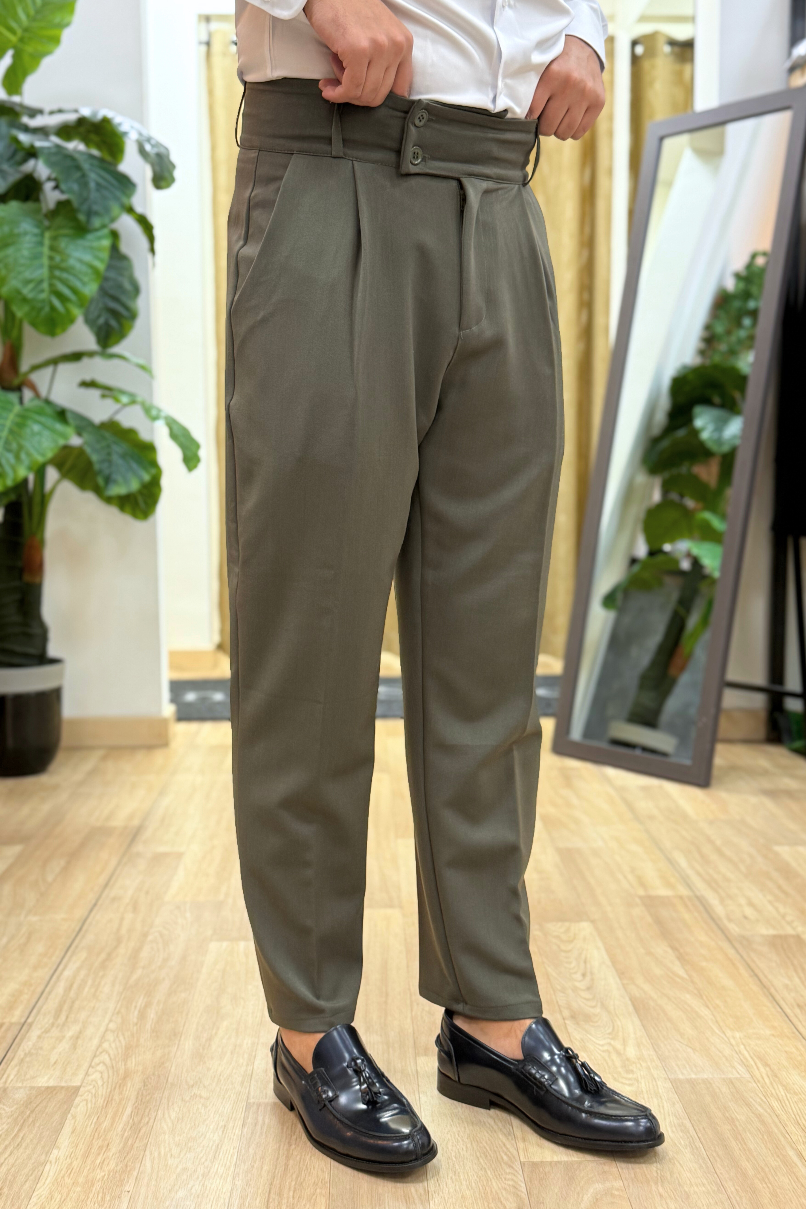 - Chiusura con doppio bottone frontale e vita alta strutturata;