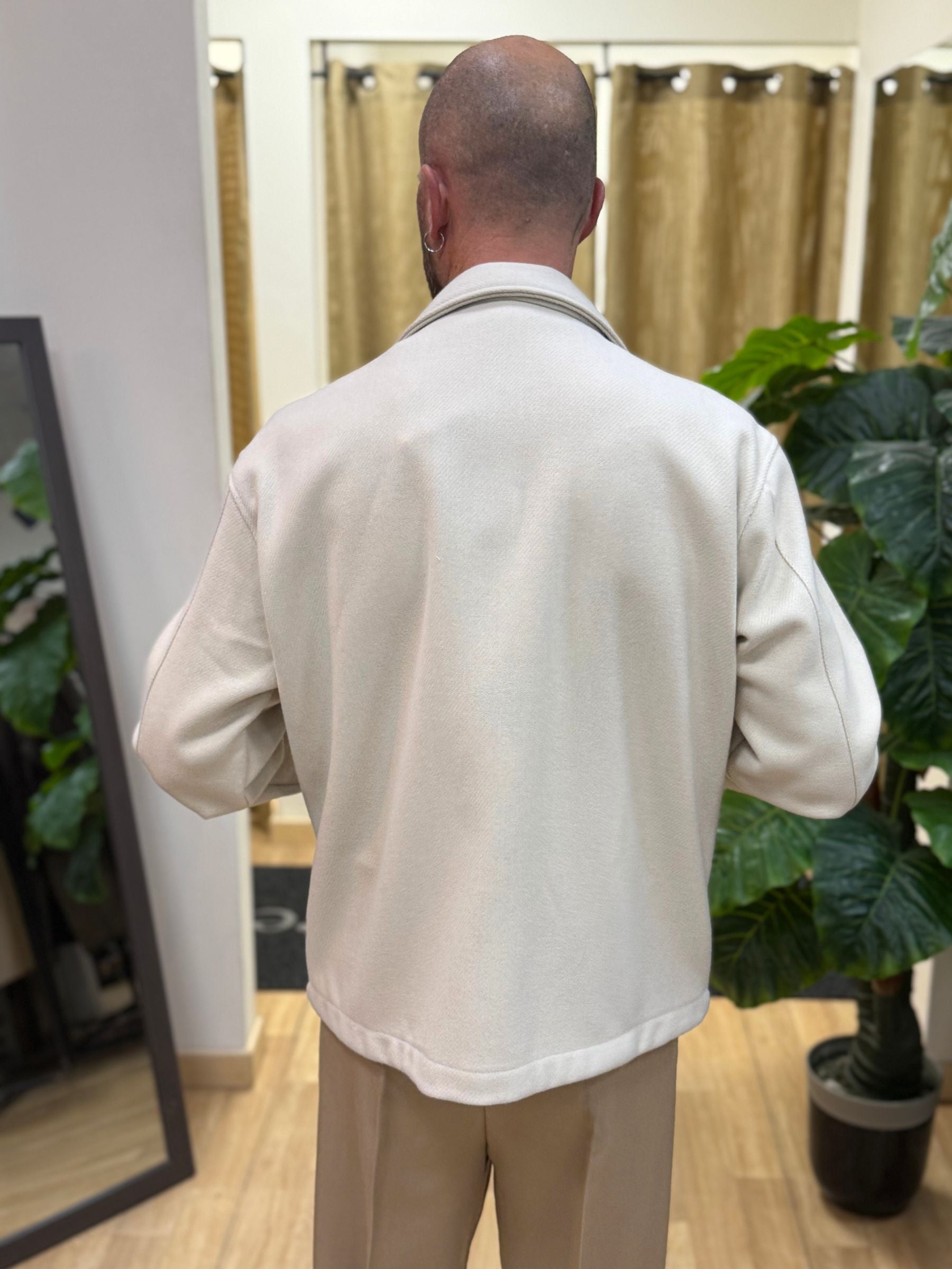 • Camicione in caldo panno effetto lana, dalla struttura morbida e dalla linea rilassata. Ideale per affrontare le giornate fredde con stile e comfort.