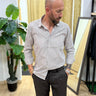 Camicia elegante a righe marrone, dal taglio slim e moderno.