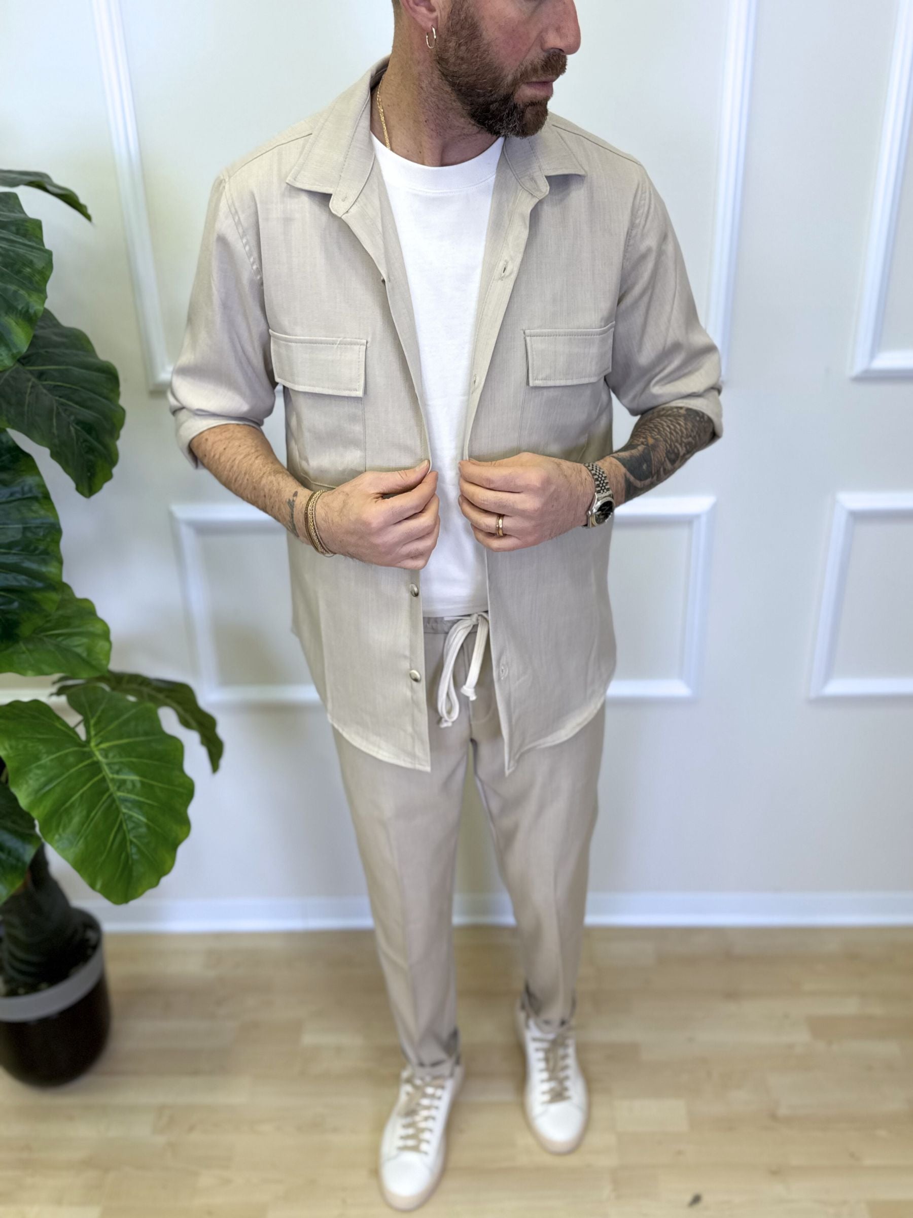 • Composizione: Completo 2 pezzi (camicia + pantalone)