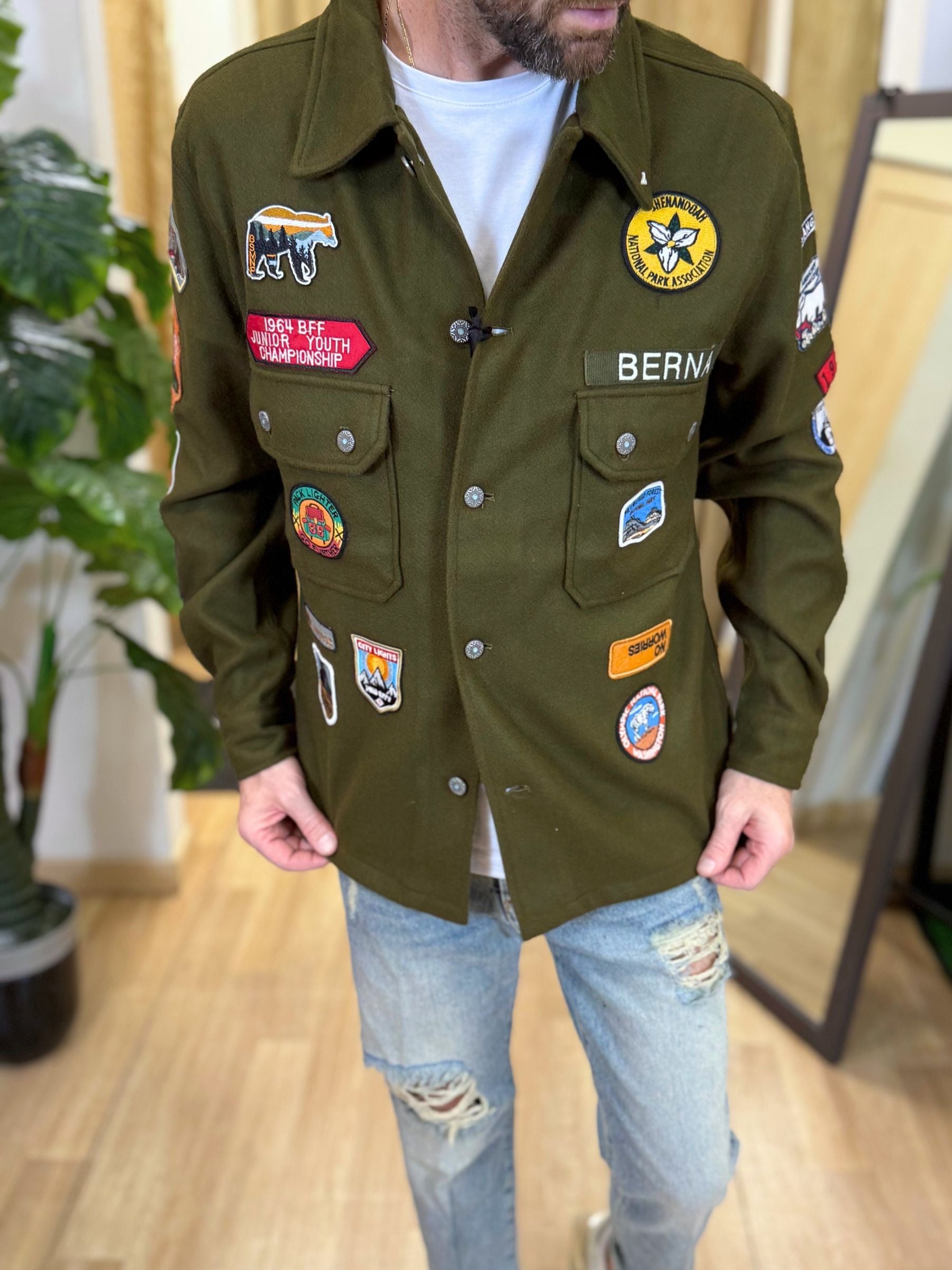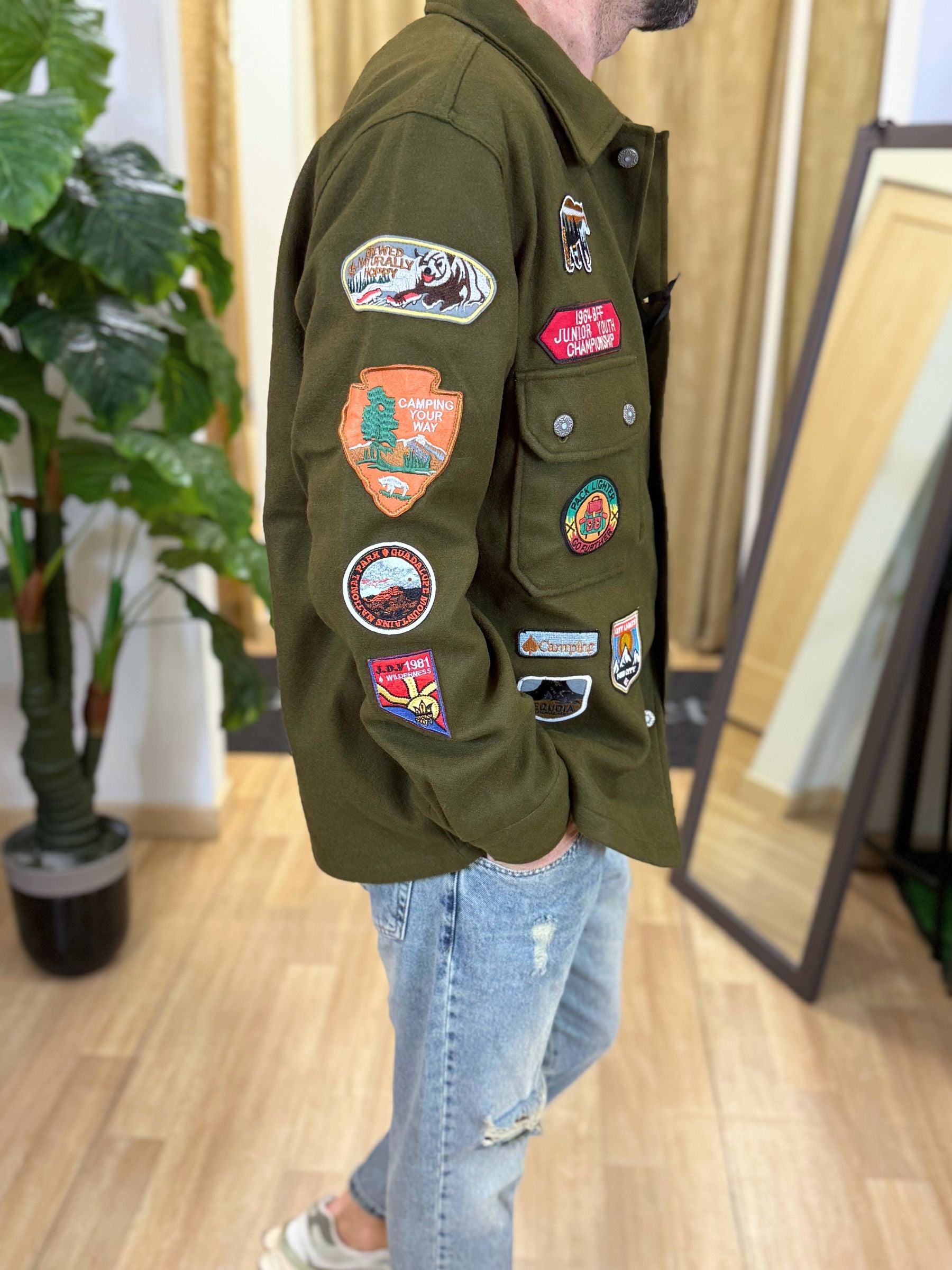 Ricco di patch decorative stile “Boy Scout” su petto, maniche e tasche