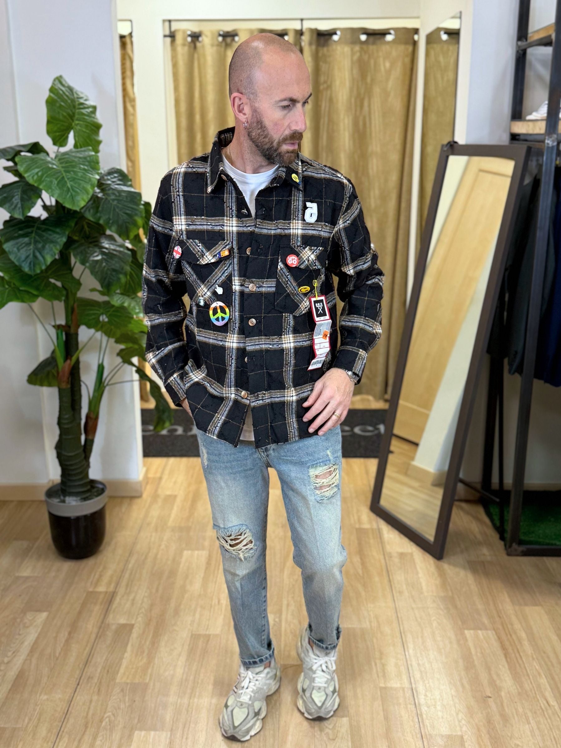 Camicione Berna check nero con spille