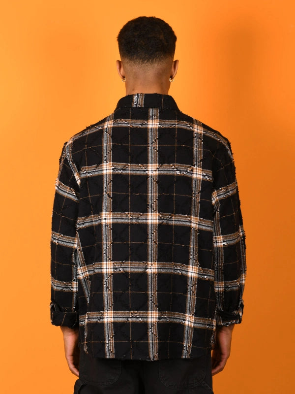 Camicia in tessuto effetto “raw” con trama check nera/beige