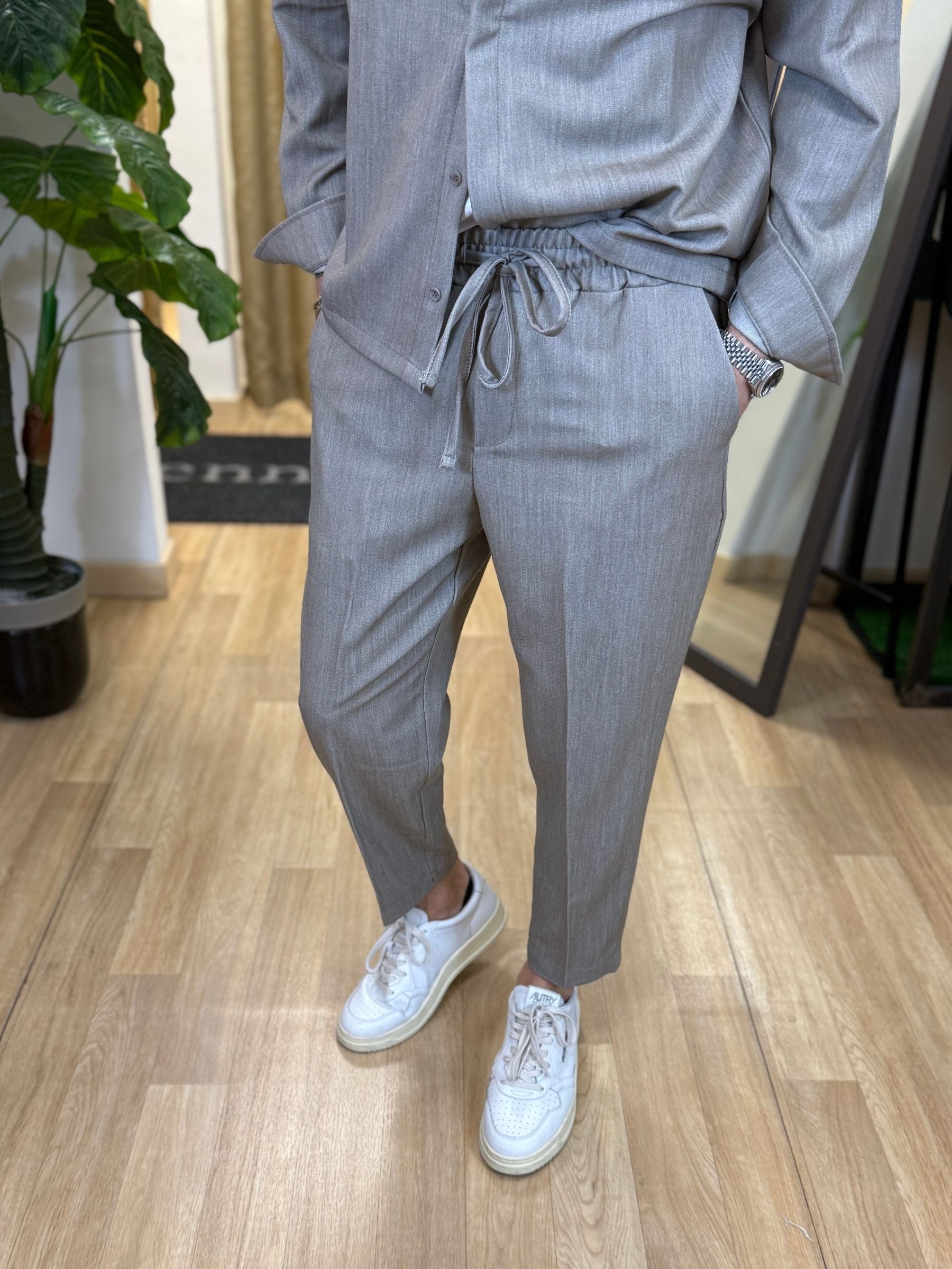 - Pantalone modello capri con elastico e coulisse in vita, taglio asciutto