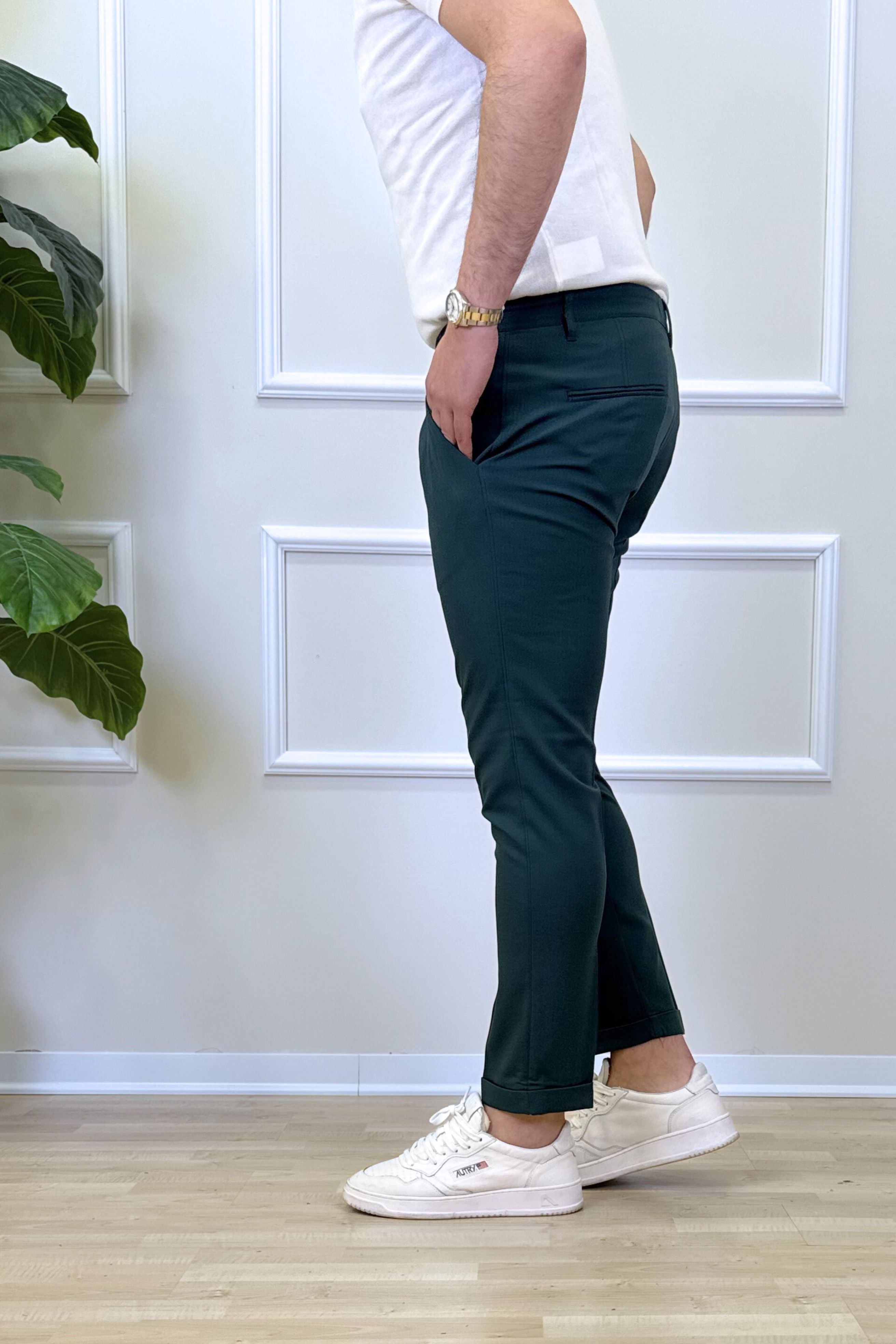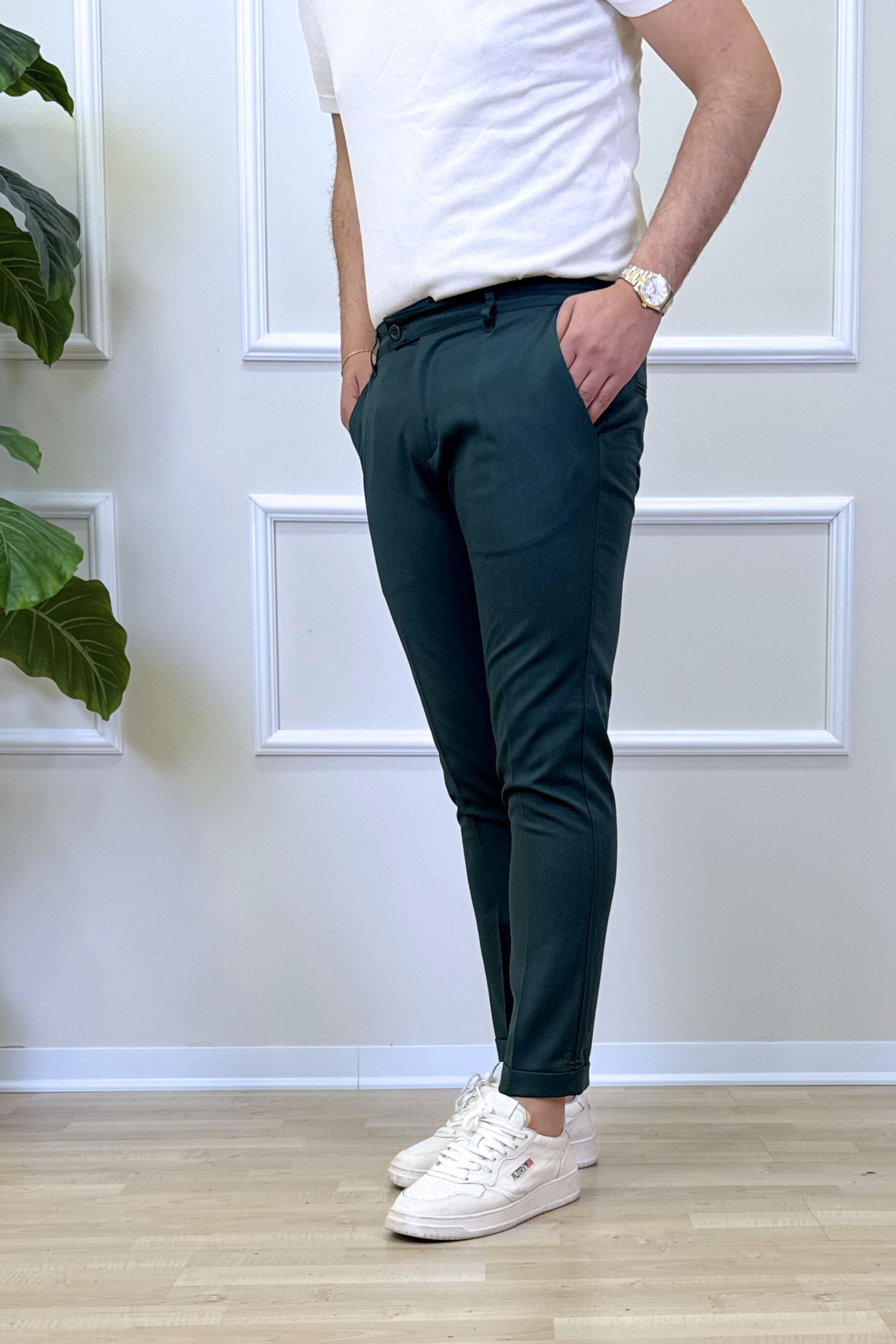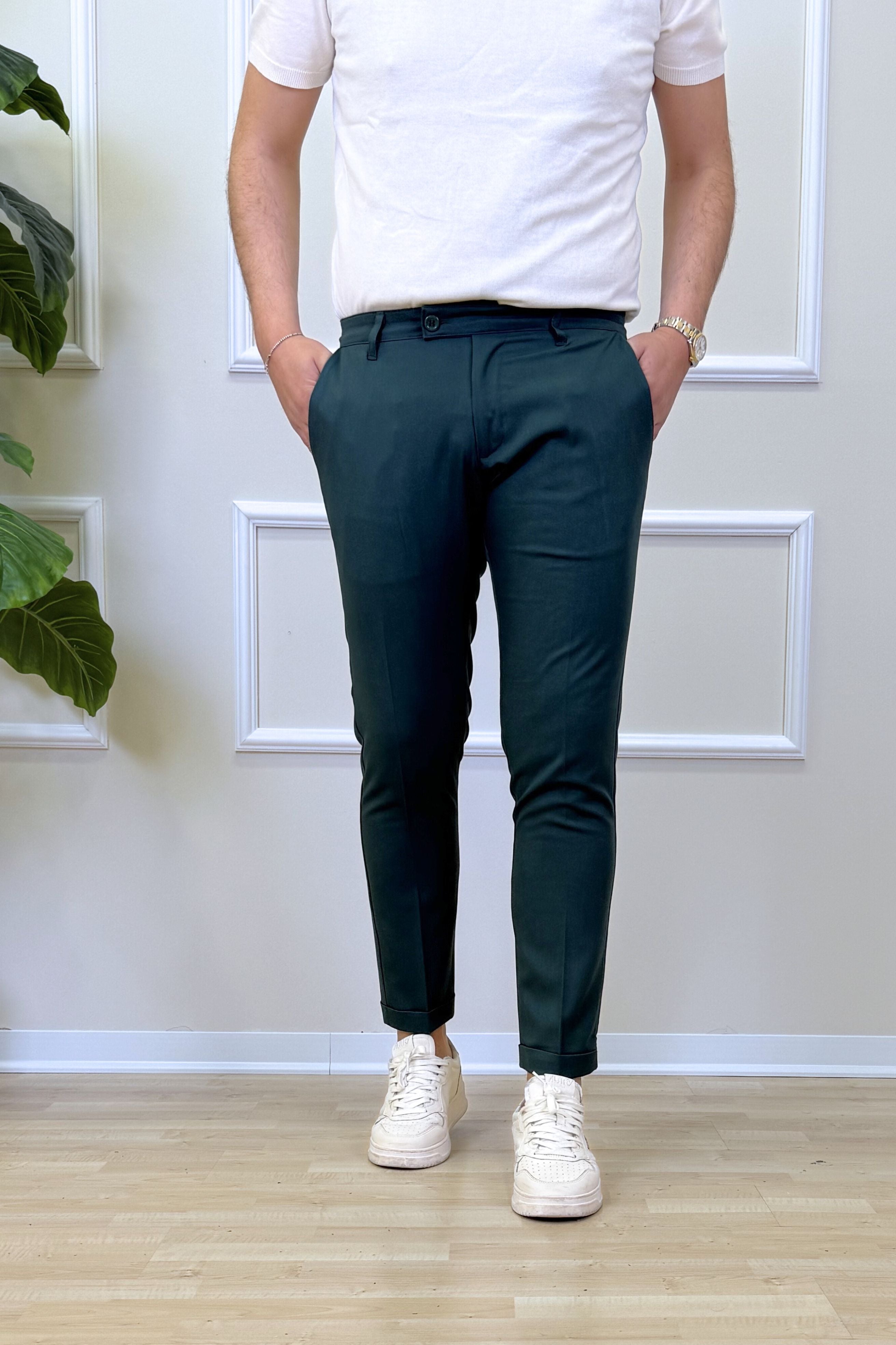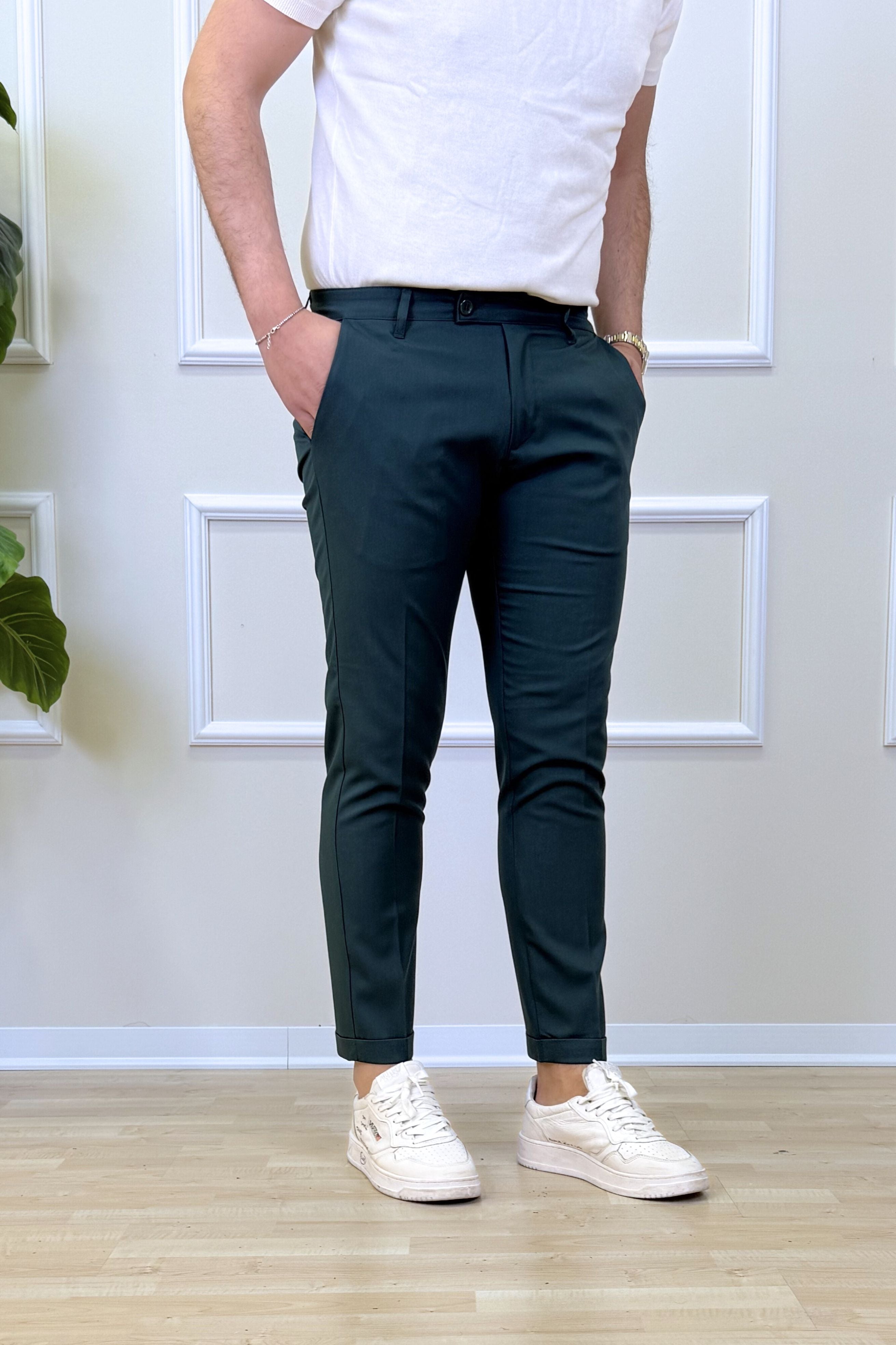 - Pantalone Tasca America con risvoltino fisso;
