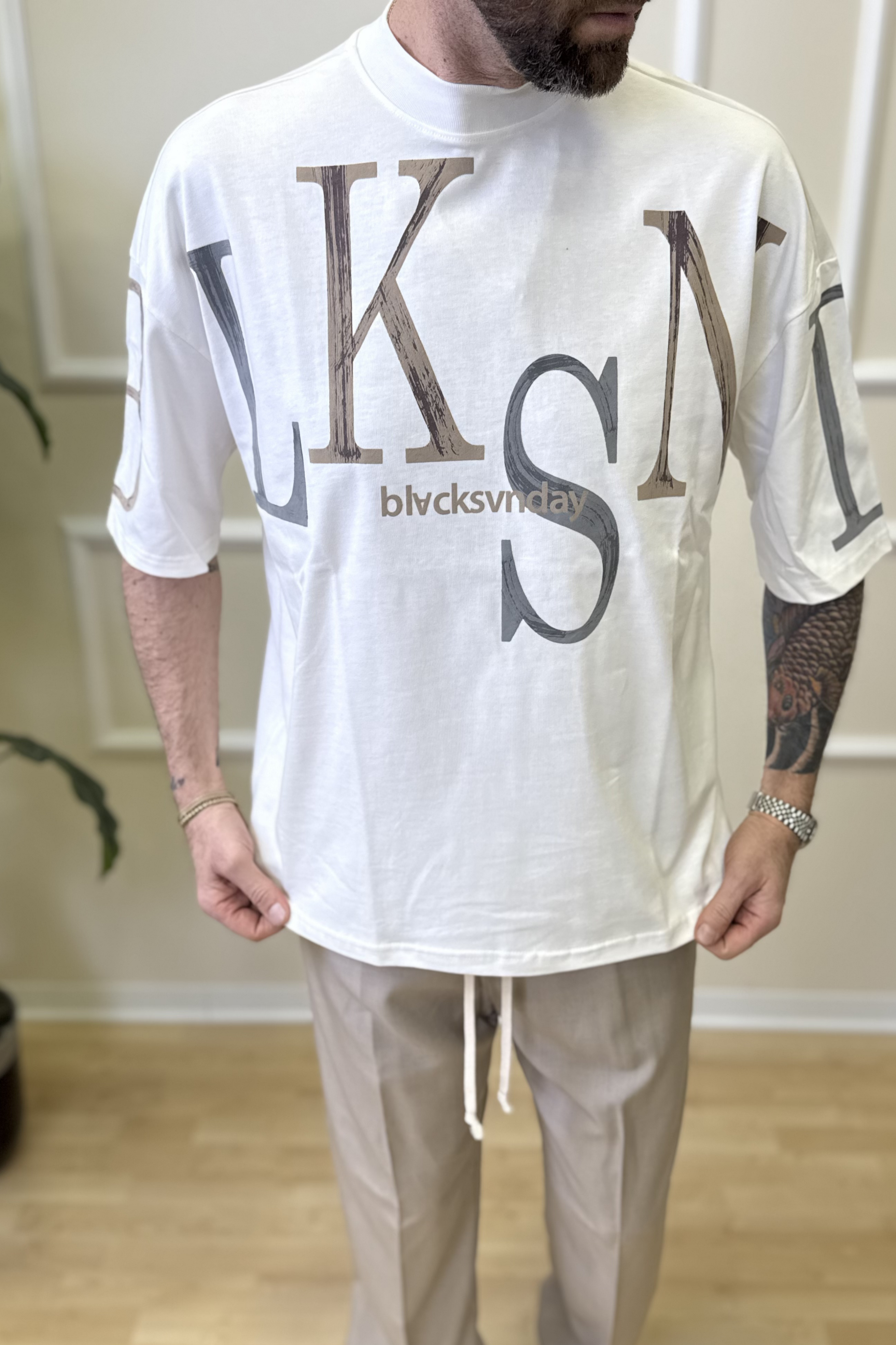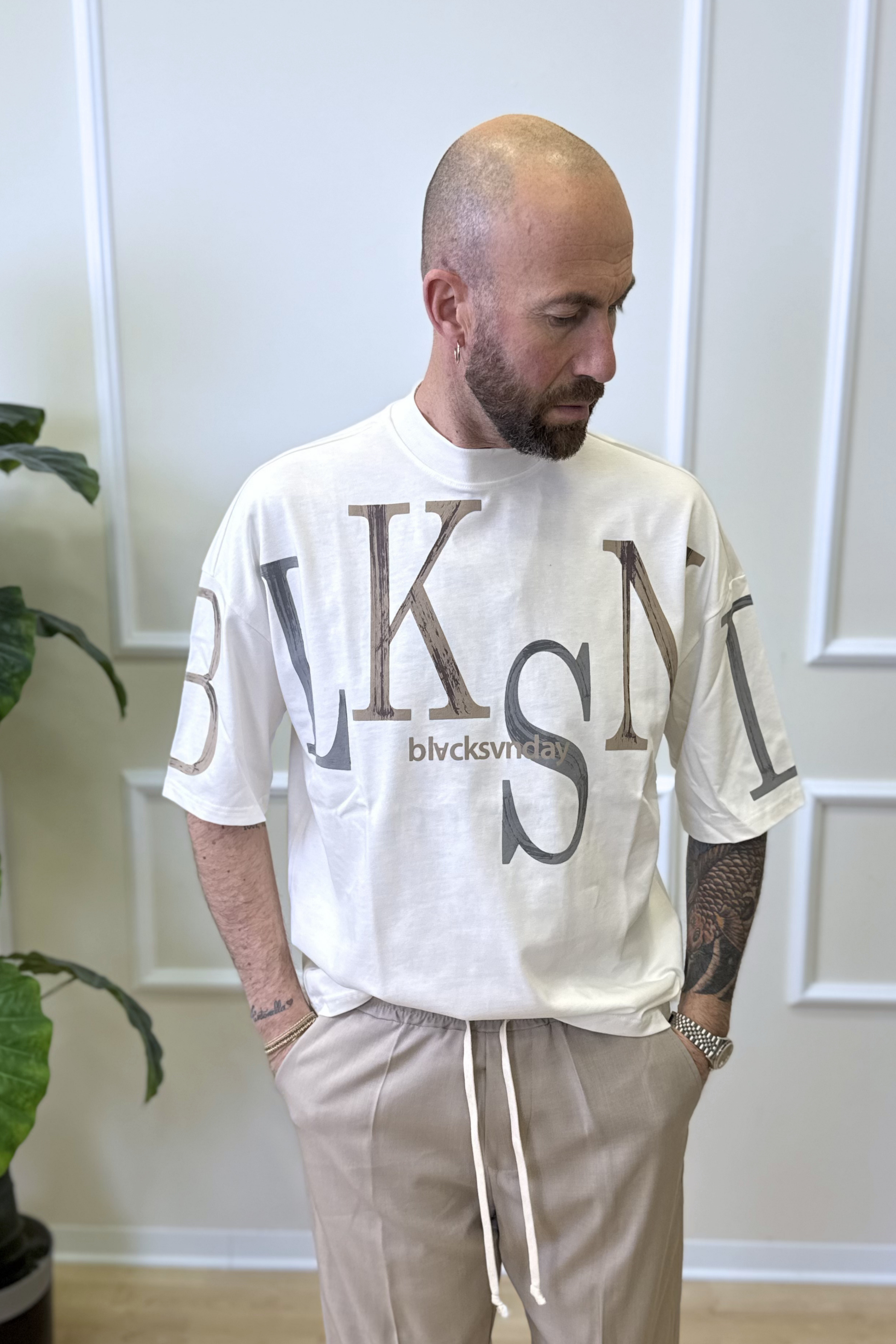 T-shirt con stampa frontale maxi lettering “BLVCKSVNDAY”
